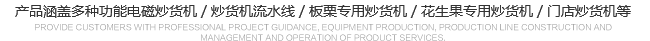 目前公司產(chǎn)品涵蓋多種功能電磁炒貨機(jī),炒貨機(jī)流水線(xiàn),板栗專(zhuān)用炒貨機(jī),花生果專(zhuān)用炒貨機(jī),門(mén)店炒貨機(jī)等。 規(guī)格品種齊全、產(chǎn)品質(zhì)量穩(wěn)定可靠,產(chǎn)品遠(yuǎn)銷(xiāo)國(guó)內(nèi)外。
